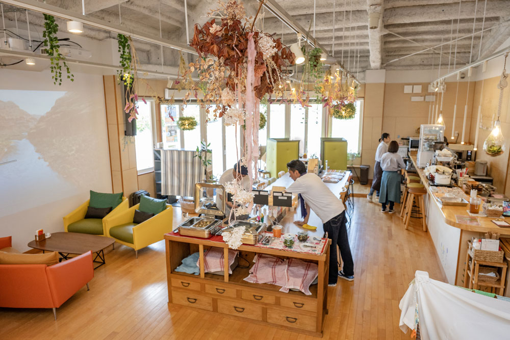 大豆生田/さっきここの「子どもカフェ」で、遠方からいらっしゃっている数名のお母さんたちとお会いしたんです。「なぜこのカフェに来たんですか?」と質問すると、「まず子育て支援センターがあって、子どもが楽しめるおもちゃがある。さらにお母さんが時間を気にせずゆっくり過ごせるカフェがあって、おいしいごはんが食べられる。その評判をSNSで知って、今では私も常連です」と。子どもだけでなく、親たちのニーズにも沿っているところが人気の理由で、この園をより開放的にしているのでしょう。