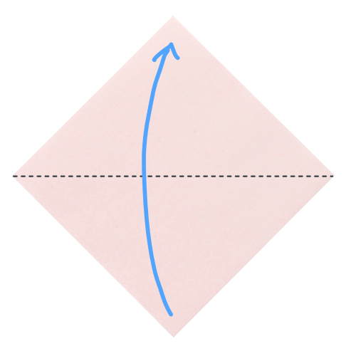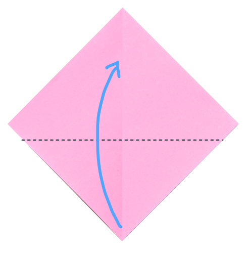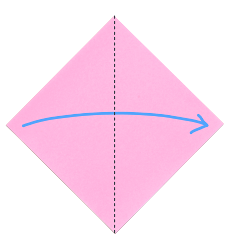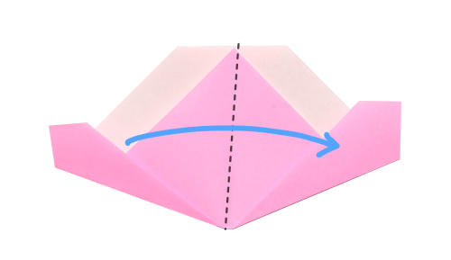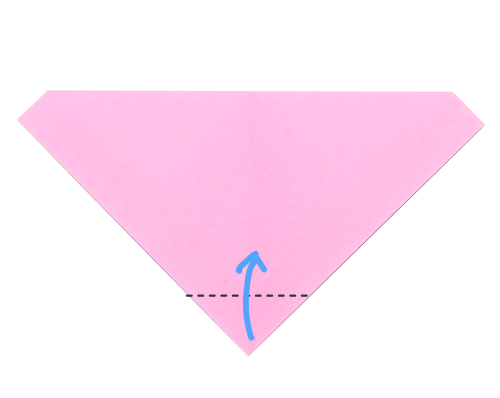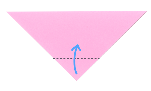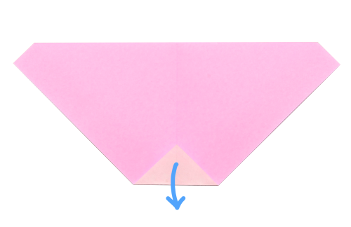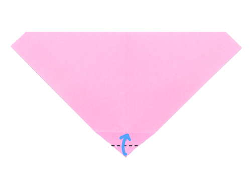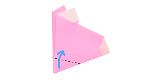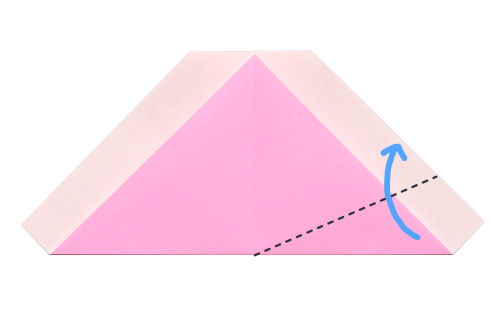 6、下の角を折りすじに向かって折る。