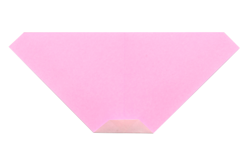 4、裏返して上下を返し、下の角を少し折る。