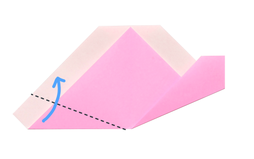 9、左の角を斜めに折る。