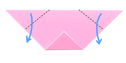 3、左右の角を斜めに折る。