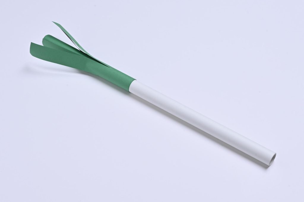 *大きい折り紙を使う場合は、トイレットペーパーの芯の長さはそのままでOK。作りたいニンジンの長さをイメージして作りましょう。