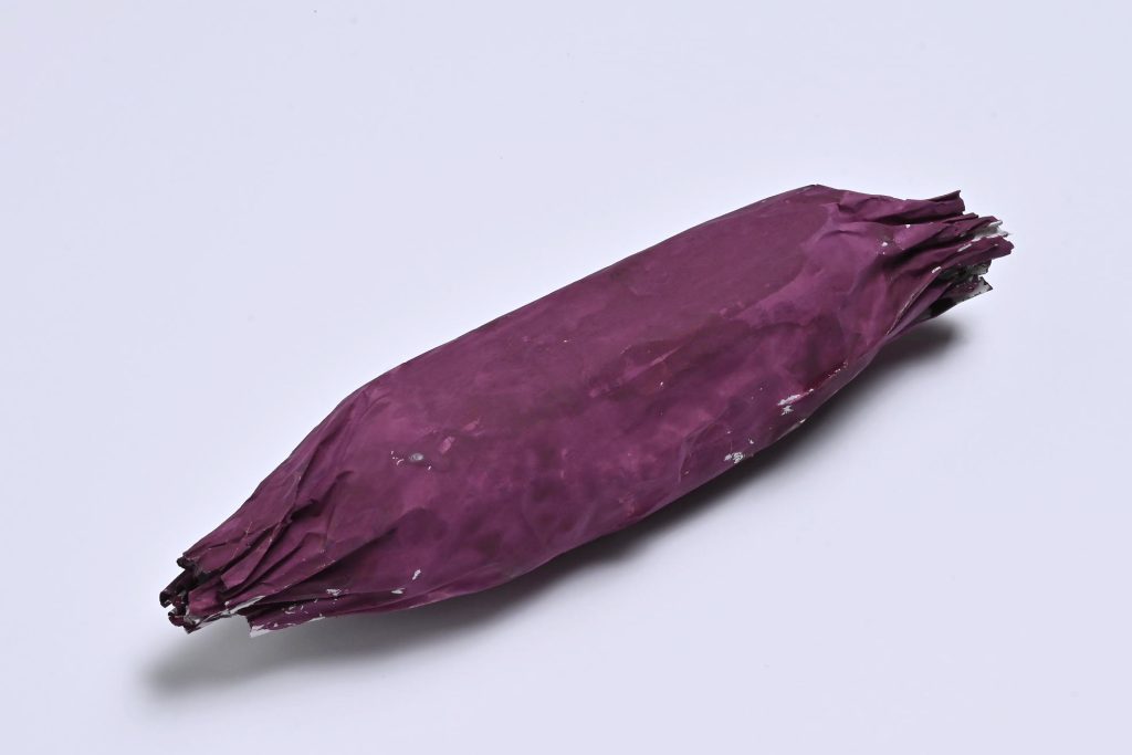 作り方 1 新聞紙を丸めてサツマイモの形にし、さらに新聞紙で包んで上下を絞って形を整える。パラパラする場合は、のりで軽くとめてもよい。