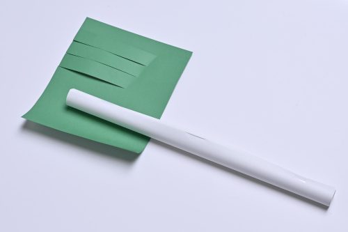 2 B5ぐらいの色画用紙に写真のように切り込みを入れ、1に巻いてセロハンテープでとめる。