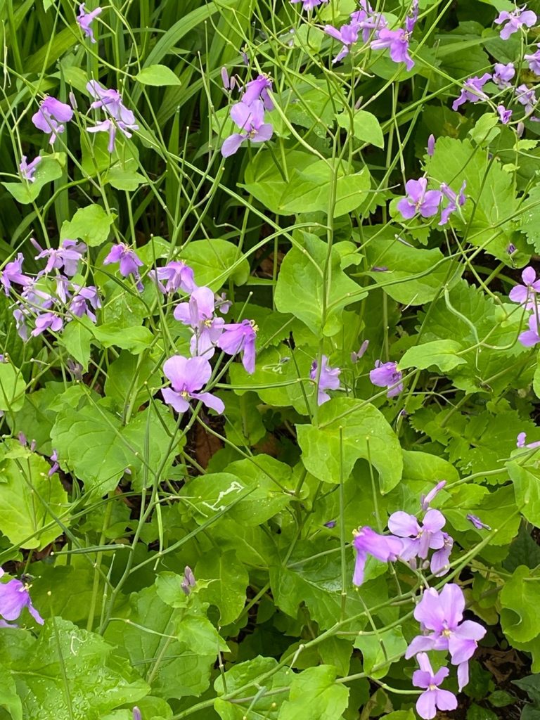 紫色の小さな花が咲く、菜の花の仲間です。「ハナダイコン」や「ショカッサイ」という名前でも呼ばれていて、園庭や道端にひょっこり生えてくることが多い、ポピュラーな植物ですよ。