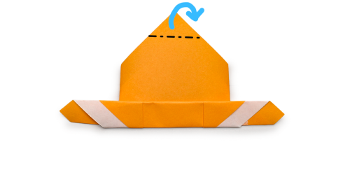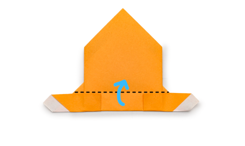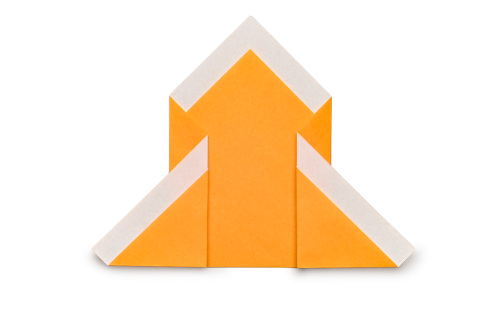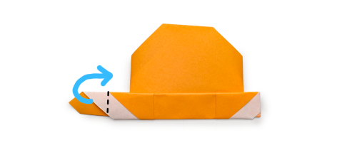 8、上の角を山折りする。