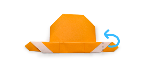 9、つばの右側を山折りする。