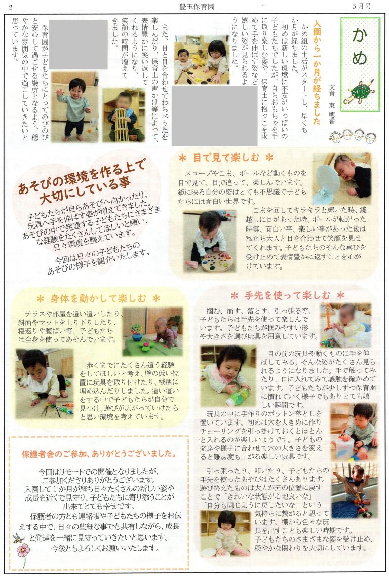 計画・記録0歳児クラスのおたより実例<5月>【豊玉保育園のクラスだより】